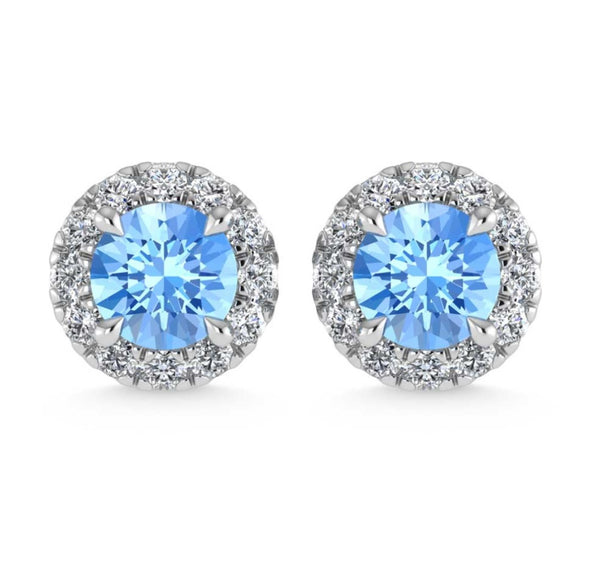 14K White Gold Lab-grown Blue Diamond Halo earrings Total Carat Weight: 2.72 ct IGI Certified