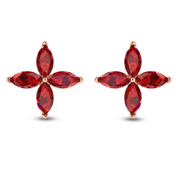 14K Yellow Gold Ruby stud earrings Marquise shape Ruby 1.44 ct Color/ Clarity G-H AAA